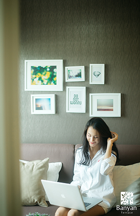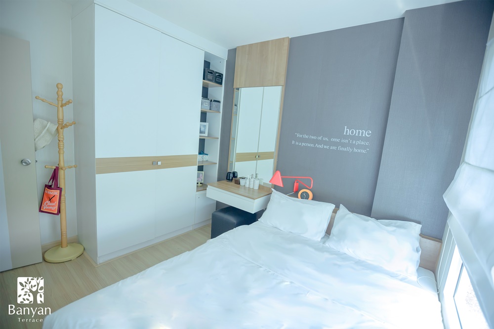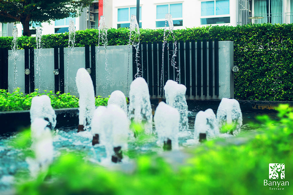 “ที่บันยันเทอเรส … เราเน้นคำว่าคุณภาพมาโดยตลอด คุณภาพของสินค้าของเราต้องดี ห้องทุกห้องมีบิวท์อินที่ดีไซน์เบ็ดเสร็จ เจ้าของห้องไม่ต้องยุ่งยากไปหาเฟอร์นิเจอร์มาแต่งใหม่ เราให้ความร่มรื่นจากต้นไม้และสวนน้ำพุ พร้อมที่จอดรถเหลือเฟือ”